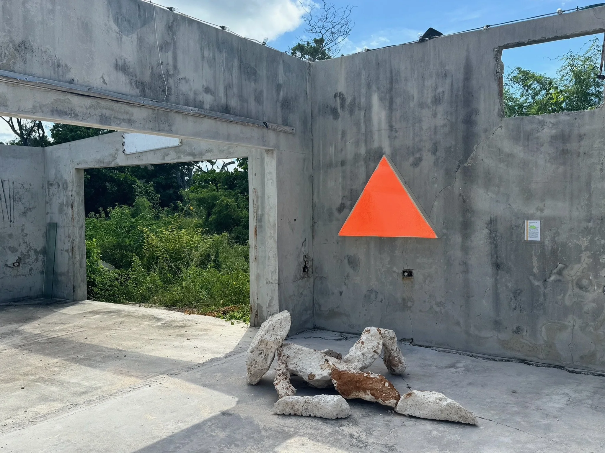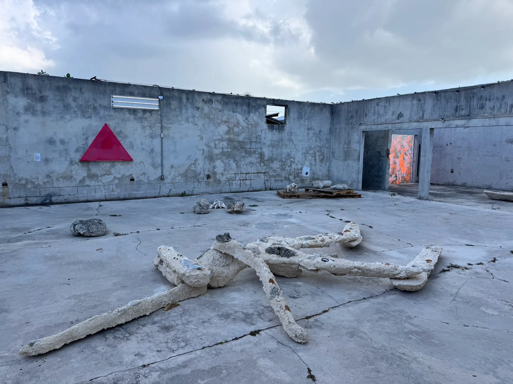 For me, the true energy of Archipelago exists in the negative space—the "sea"—between these components. I challenge the viewer to become an active cartographer, suggesting that connection and narrative aren't handed to them; they emerge from the simple act of traversing the installation. My commitment to addressing current ecological issues is made explicit as I see the external elements—sun, salt, and rain—as essential, collaborative forces. These forces don't just shape the materials; they enact the very processes of environmental degradation and resilience that I examine through the work. To heighten this, I've included several architectural interventions, one of which is a calculated void in the floor, another is an expansive opening, or the unleveling dips in the foundation, to utilize the open-air environment fully. This reinforces my core theme: coherence is not static, but is found in the tension and necessary distance between the singularities that make up our complex reality.