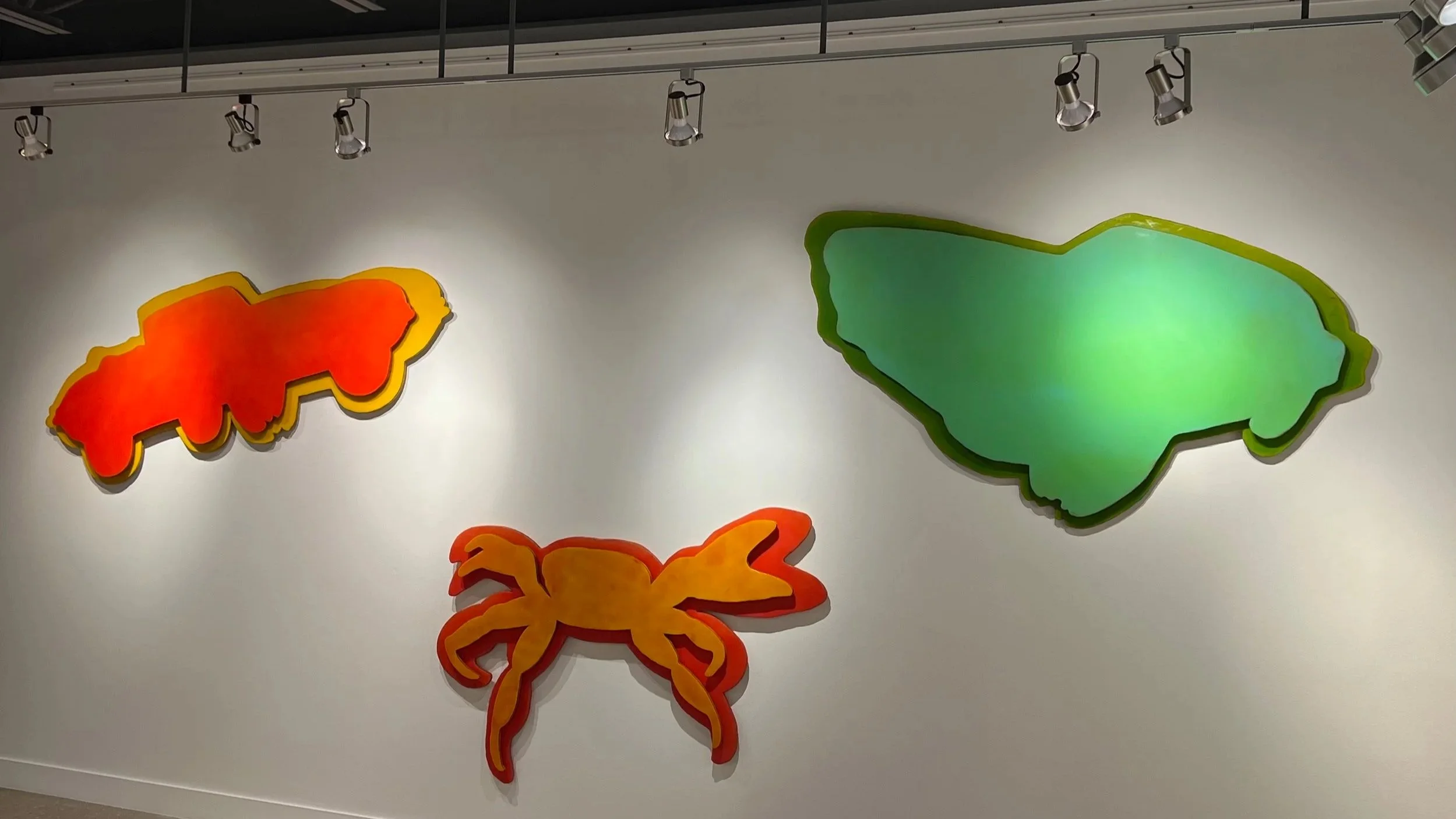 Crash! is an interpretation of the brevity of life where nature, memory, and the industrial machine violently collide. The work speaks directly to a distinctly Caymanian expression of ‘Pop’ by mapping a profound personal memory onto the island’s visual landscape of globalized development. Like the original 1960s Pop art movement, Crash! subverts high-art traditions by utilizing industrial materials and appropriating a seemingly mundane, yet tragic, everyday subject—the roadkill collision—for critical commentary. I draw inspiration from the high-gloss, synthetic Finish Fetish of the California West Coast scene, translating the aesthetic of the sleek, consumer machine—like the E-Type convertible and the TransAm I learned to drive on—into pigmented resin-coated plywood silhouettes.