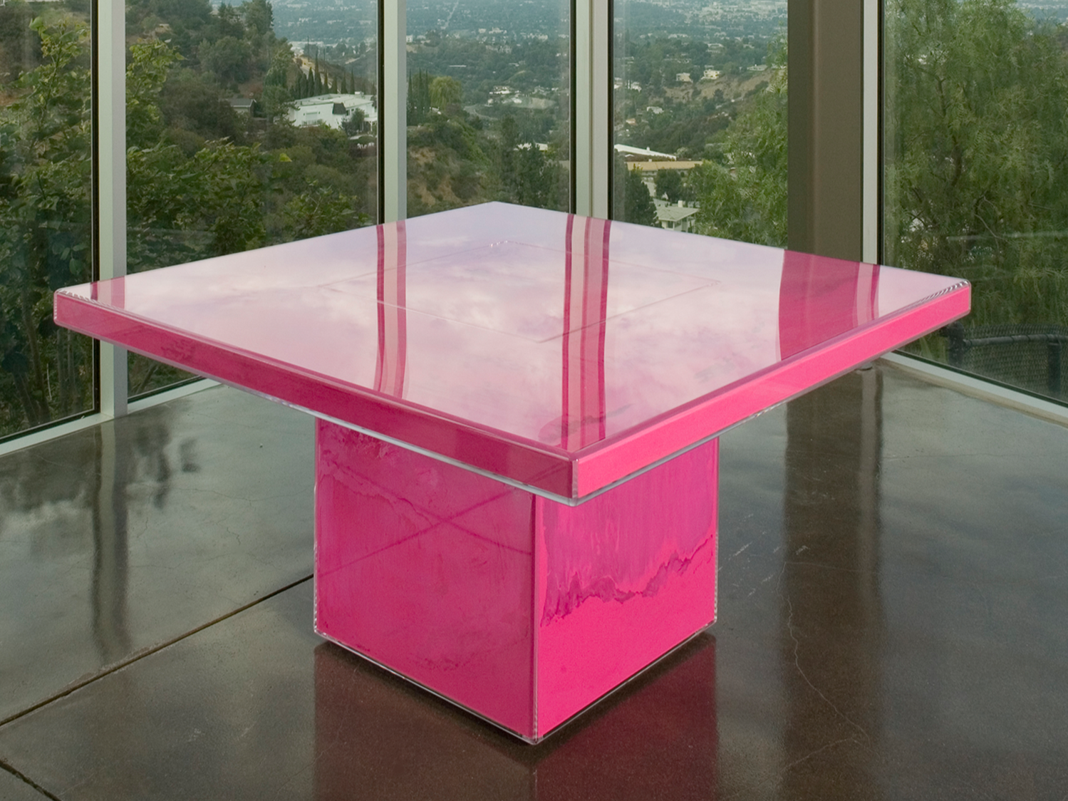 As a Venice Beach, California-based artist, Smith’s practice is in direct conversation with the Light and Space movement of the 1960s. This lineage is evident in the use of industrial materials, such as clear acrylic and powder pigments (as in the Untamed series), which investigate light, volume, and perception, utilizing processes of controlled chance derived from west coast industry and surf culture's material innovations.